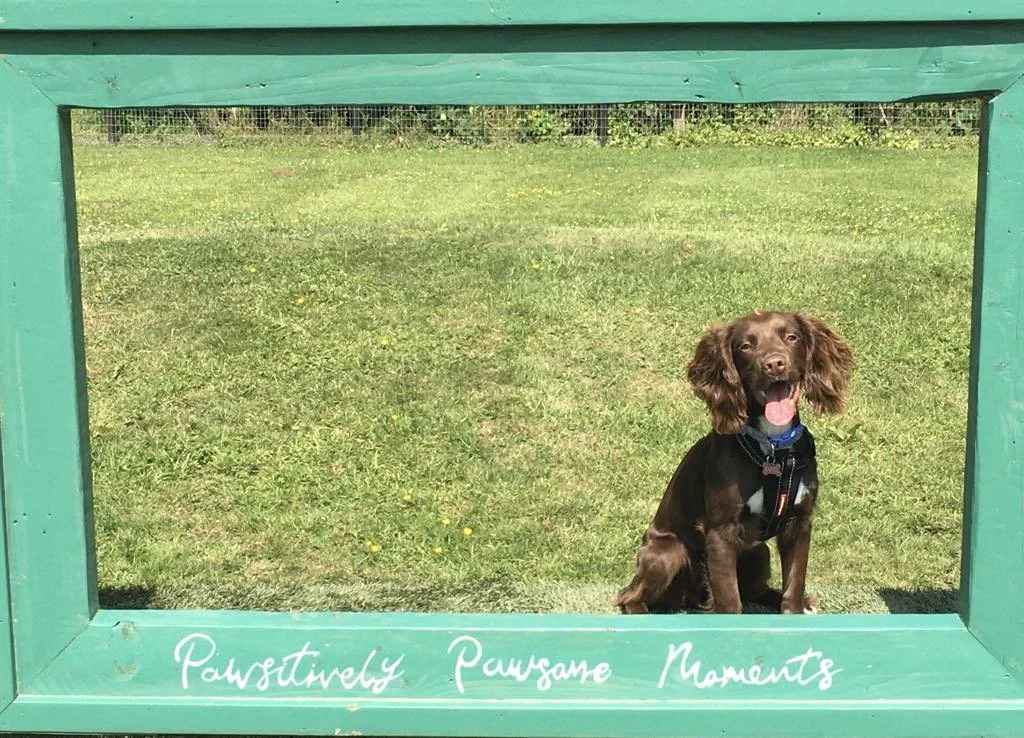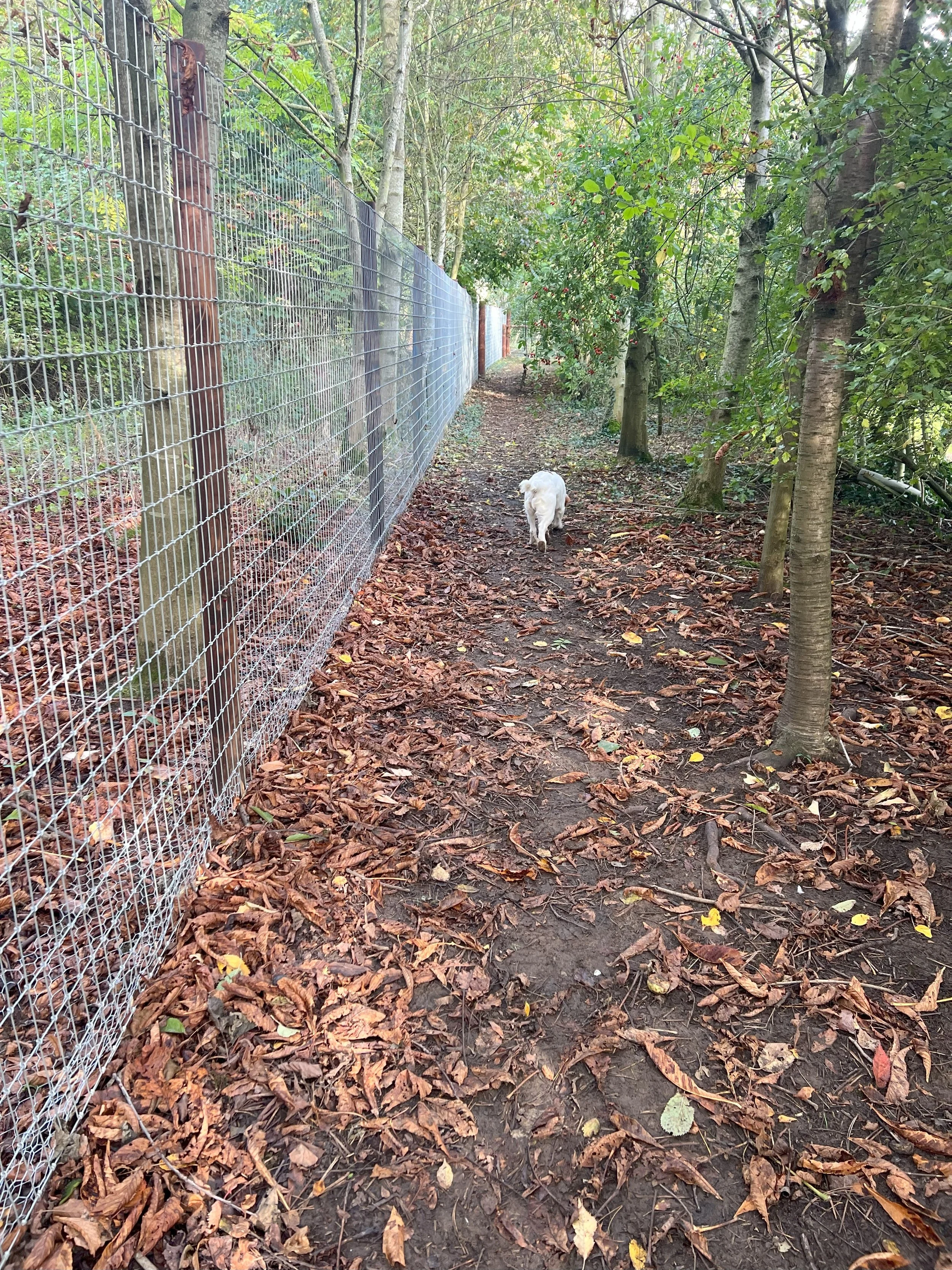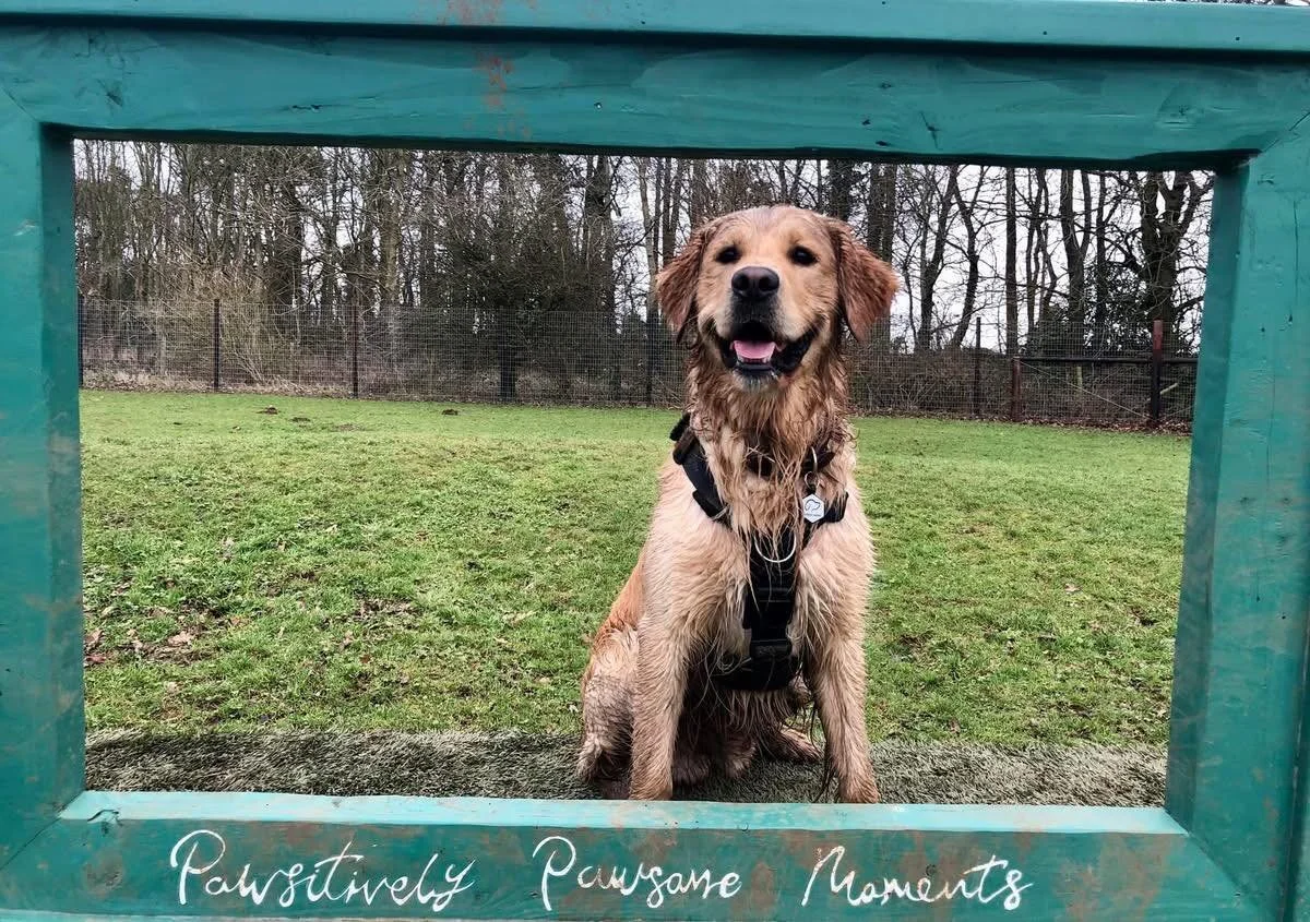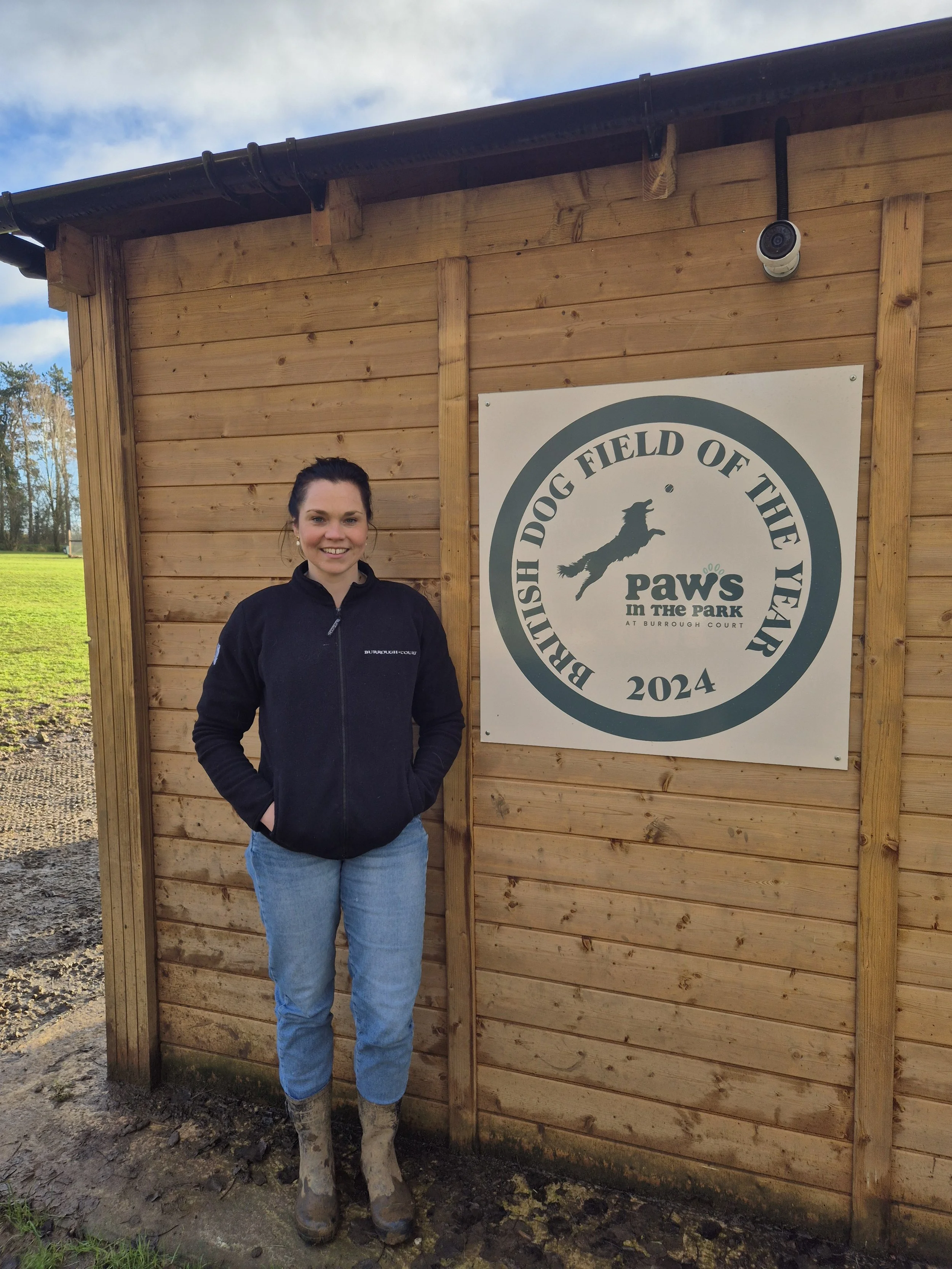 Turn left just before these main gates up this lane to reach Paws in the Park at Burrough Court